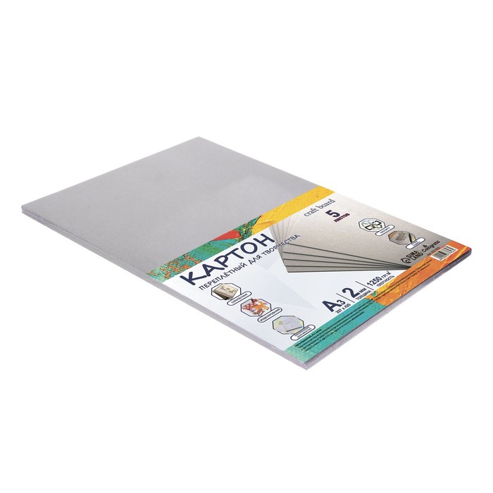 Картон переплётный 2.0 мм, А2, 2 листа, 1250 г/м², серый, в пакете