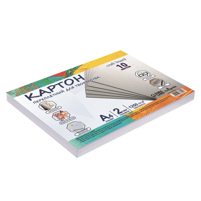 Картон переплётный А3 (297 х 420 мм), набор 5 листов, 2.0 мм, 1250 г/м2, серый, в пакете, Calligrata