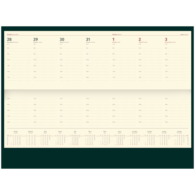 Планинги Berlingo Vivella Prestige изготовлены из высококачественного кожзаменителя с мягкой гладкой матовой поверхностью. Планинг датированный формата - 330*130 мм с обложкой с поролоновой прослойкой, прострочкой по периметру и имиджевым тиснением. Цвет обложки - зеленый. Высококачественная белая бумага повышенной плотности 80 г/м2, пантонная печать блока в 2 краски.