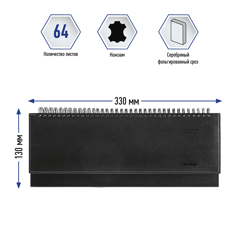 Планинг датированный 2026г., 64л., 330*140мм, кожзам, Berlingo "xGold", черный, зол.срез