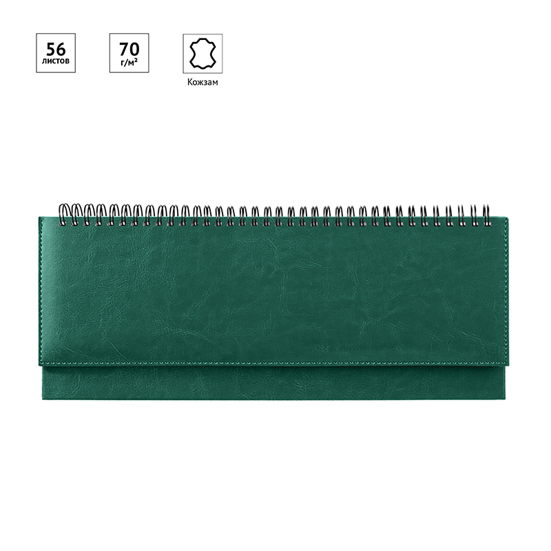 Недатированный планинг OfficeSpace серии Nebraska в элегантном дизайне отлично подойдет тем, кто ценит классику в дизайне. Твердая обложка зелёного цвета выполнена из высококачественного переплётного материала с поролоновой прослойкой. Внутренний блок состоит из 56 листов офсетной тонированной бумаги плотностью 70 г/м2, печатью в 2 краски.<br/>Планинг размером 330*130 мм отлично подходит для хранения на рабочем столе. Наличие различной справочной информации, календаря и телефонной книжки сделают его использование комфортным. <br/>• Размер: 330*130 мм;<br/>• Тип обложки: твердая;<br/>• Количество листов: 56;<br/>• Цвет обложки: зелёный;<br/>• Плотность блока: 70 г/кв.м.