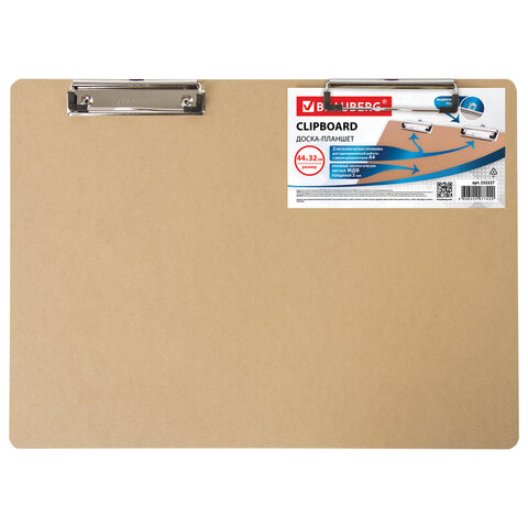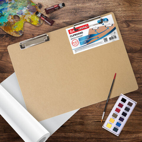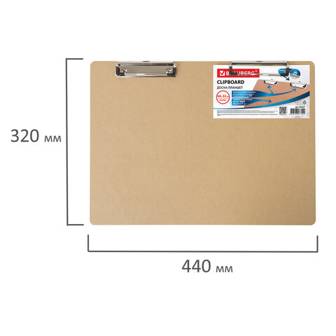 Доска-планшет БОЛЬШОГО ФОРМАТА (320х460 мм), А3, BRAUBERG "Eco" с прижимом, МДФ, 3 мм, СВЕТЛО-КОРИЧНЕВАЯ, 232226
