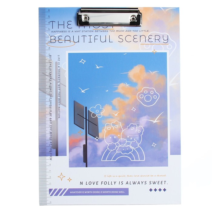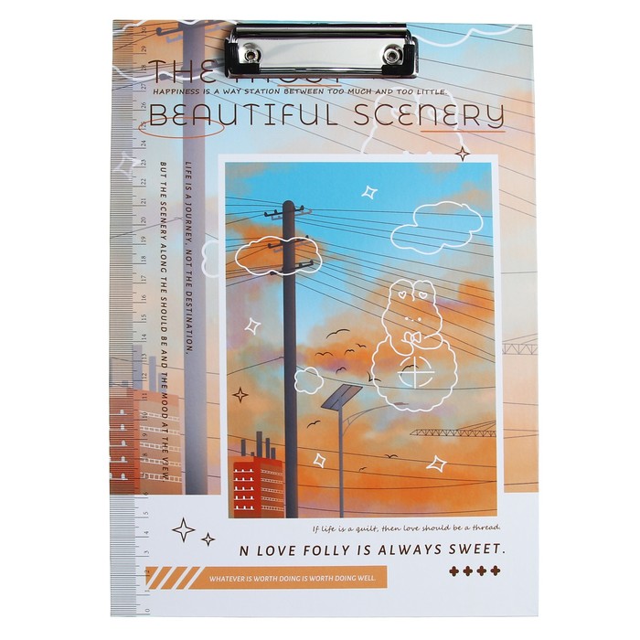 Планшет с прижимом формат А4 пластик, тонированный, с линейкой, МИКС