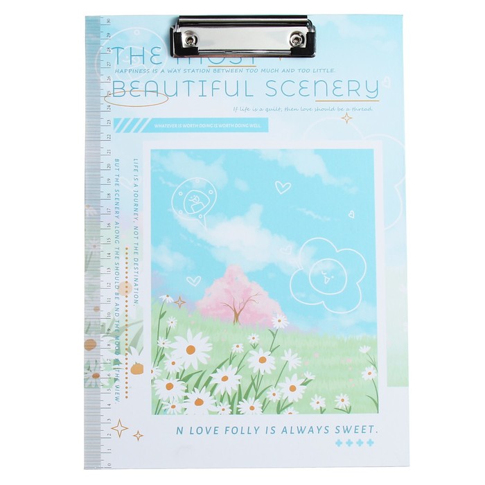 Планшет пластиковый с зажимом А4, ErichKrause "Matt Pastel Bloom", шкала 30см, в пакете, МИКС