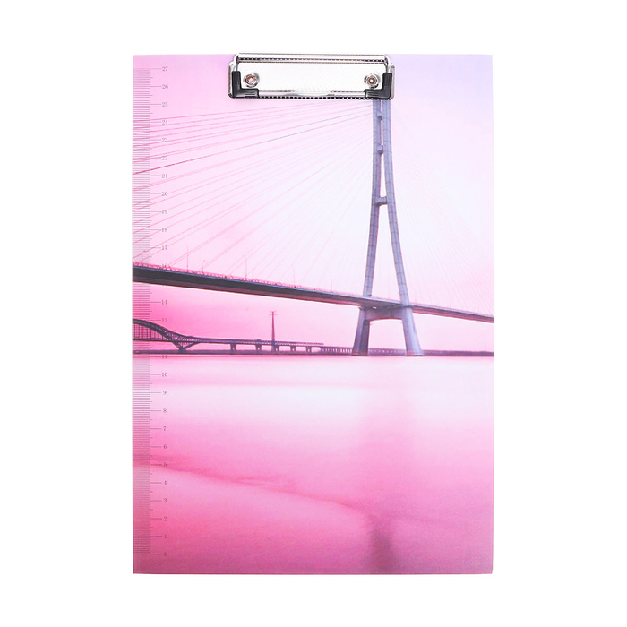 Планшет с прижимом формат А4 пластик, тонированный, с линейкой, МИКС