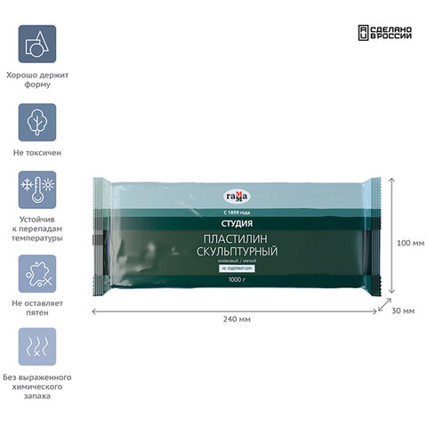 Пластилин скульптурный ЭКСТРА МЯГКИЙ ОЛИВКОВЫЙ "Секреты художника", 1 кг, BRAUBERG ART, 107510