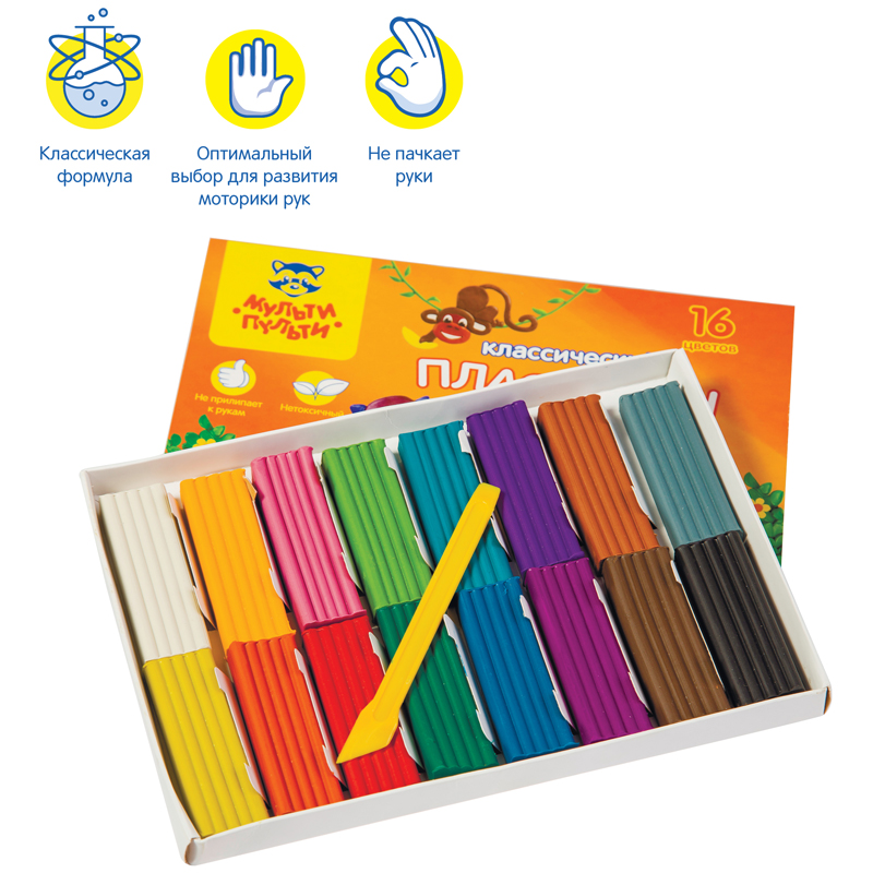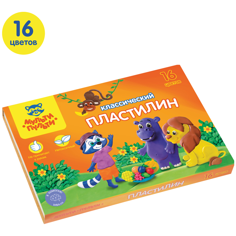 Пластилин Мульти-Пульти предназначен для лепки и моделирования. Не прилипает к рукам, имеет яркие, сочные цвета, которые легко смешиваются друг с другом. Для детей старше 3-х лет.