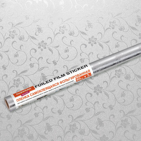 Самоклеящаяся пленка, алюминиевая фольга защитная для кухни/дома, 0,6х3 м, серебро, узор, DASWERK, 607846
