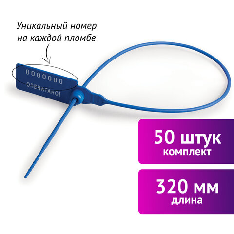 Пломбы пластиковые номерные СТРЕЛА, самофиксирующиеся, длина 525 мм, КРАСНЫЕ, КОМПЛЕКТ 50 шт.