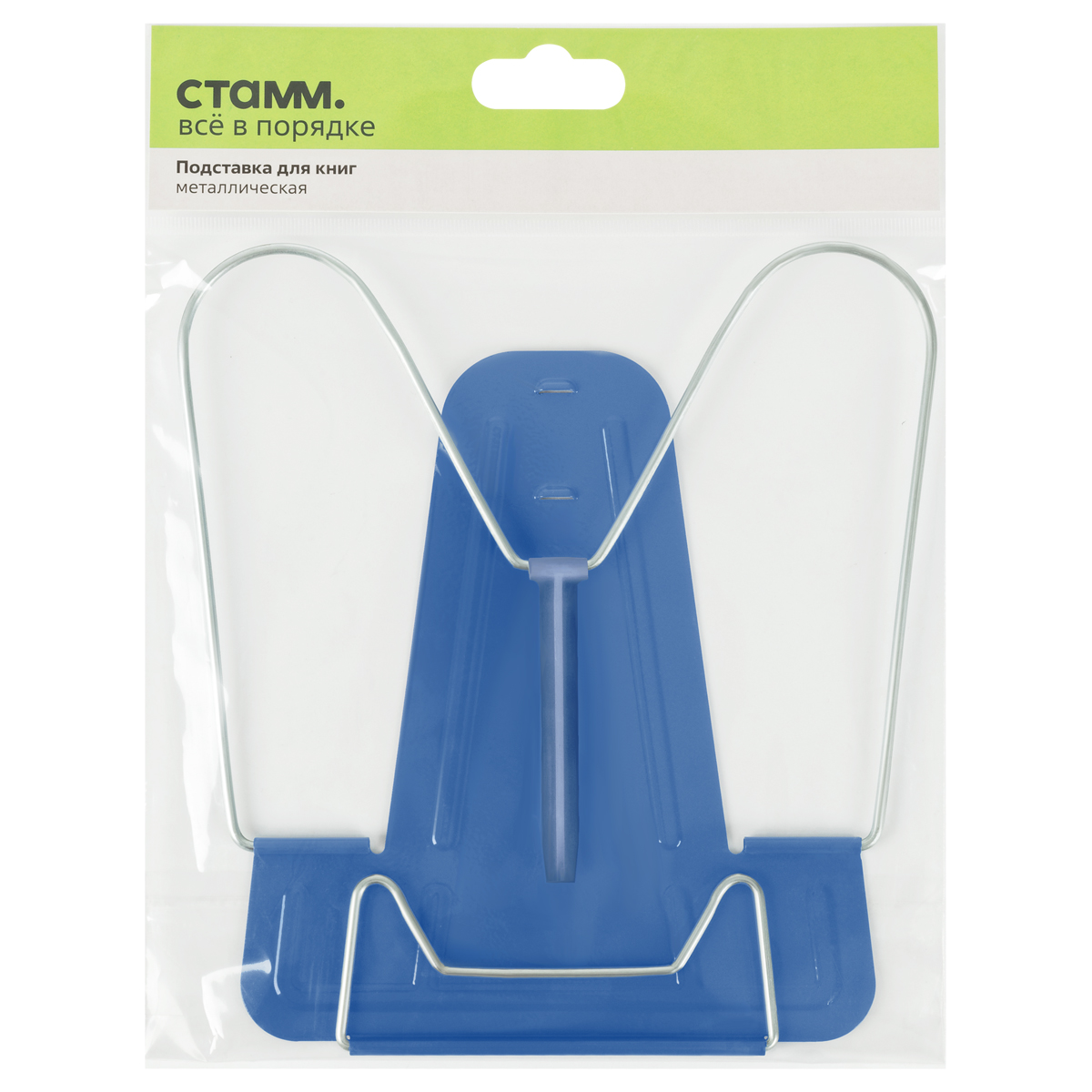 Подставка для книг металлическая «СТАММ» позволяет расположить книгу под удобным для чтения углом наклона. Подходит для больших и малых форматов, имеет регулируемый угол наклона: от 110 до 130 градусов. Благодаря наличию фиксатора подставка не складывается под тяжестью книги. Размер изделия: 210*285 мм. Материал подставки: металл/пластик. Цвет изделия: синий.<br/>Использование подставки поможет сформировать правильную осанку. Складная конструкция изделия удобна при транспортировке и хранении. Поставляется в пакете с европодвесом. <br/>• Вид: подставка для книг;<br/>• Материал: металл/пластик;<br/>• Угол наклона: от 110 до 130 градусов;<br/>• Размер: 210*285 мм;<br/>• Цвет: синий.