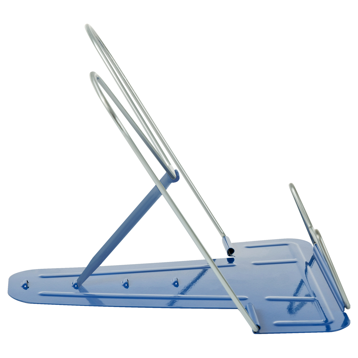 Подставка для книг металлическая «СТАММ» позволяет расположить книгу под удобным для чтения углом наклона. Подходит для больших и малых форматов, имеет регулируемый угол наклона: от 110 до 130 градусов. Благодаря наличию фиксатора подставка не складывается под тяжестью книги. Размер изделия: 210*285 мм. Материал подставки: металл/пластик. Цвет изделия: синий.