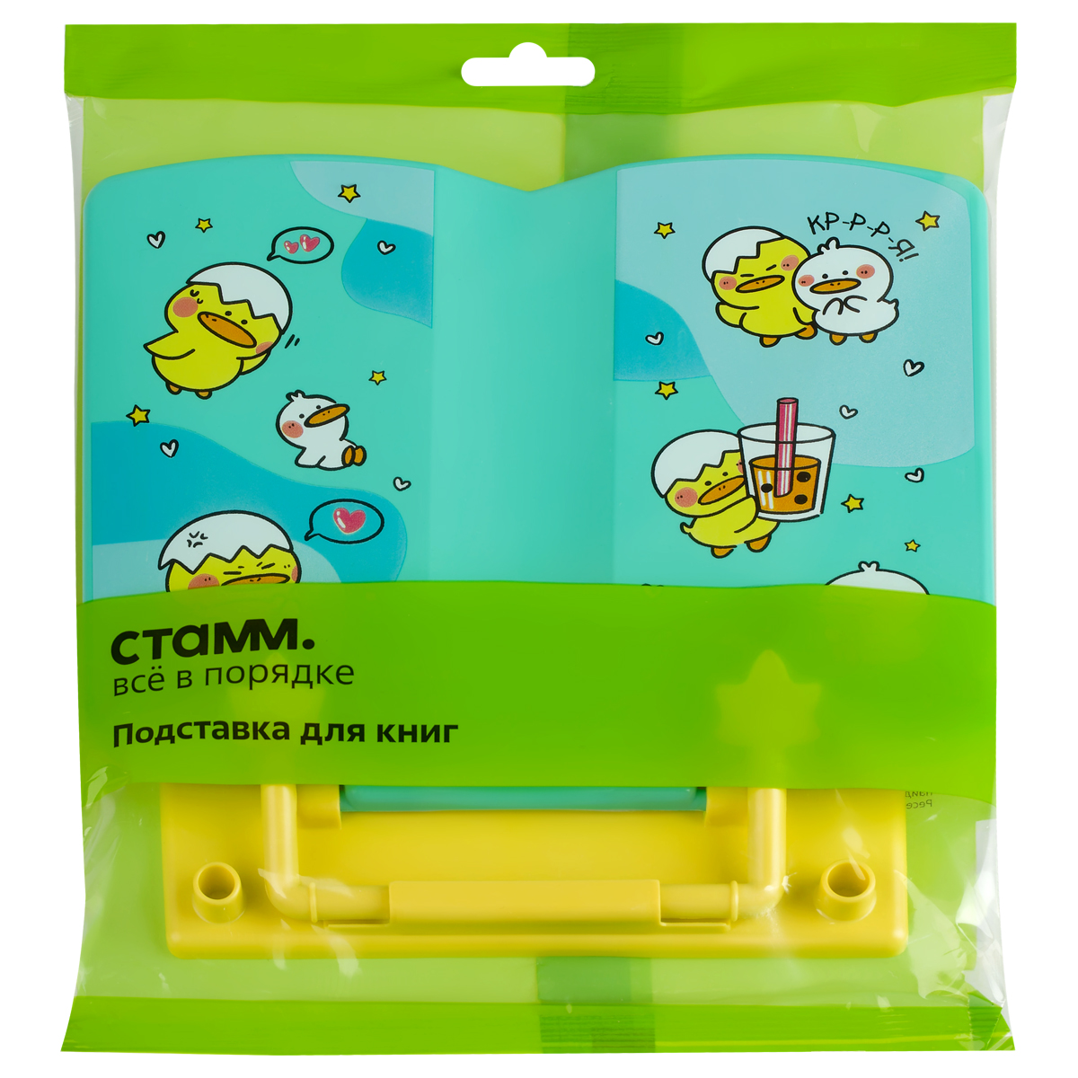 Подставка для книг «СТАММ» серии «Утки» – школьный аксессуар, повышающий комфорт при чтении. Изделие размером 200*200*25 мм подходит для больших и малых форматов книг. Подставка изготовлена из качественного пластика. Благодаря наличию фиксатора подставка не складывается под тяжестью книги. Изделие имеет регулируемый угол наклона: от 110 до 135 градусов. Складная конструкция удобна при транспортировке и хранении. Использование подставки поможет сформировать правильную осанку. Цвет изделия – мятный/жёлтый. Индивидуальная упаковка – флоупак.<br/>• Материал: пластик;<br/>• Угол наклона: от 110 до 135 градусов;<br/>• Размер: 200*200*25 мм;<br/>• Цвет: мятный/жёлтый.