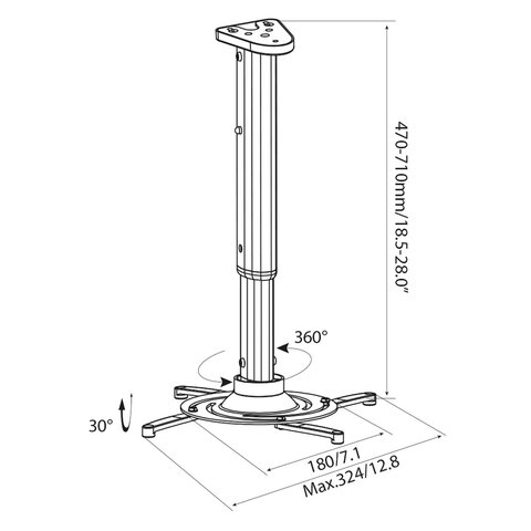 Кронштейн для проекторов настенно-потолочный CACTUS CS-VM-PR05B-AL, высота 23-31 см, 10 кг