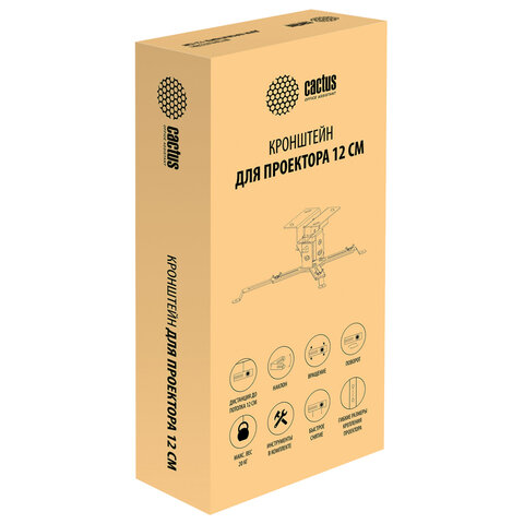 Для того чтобы установить кронштейн на потолке, не требуется особых знаний и специального оборудования, а вся необходимая информация находится в инструкции по применению. Кронштейн для проектора Cactus выполнен из высококачественных материалов, а профессиональная сборка и дополнительная защита от механических повреждений обеспечивают длительный срок службы без поломок.