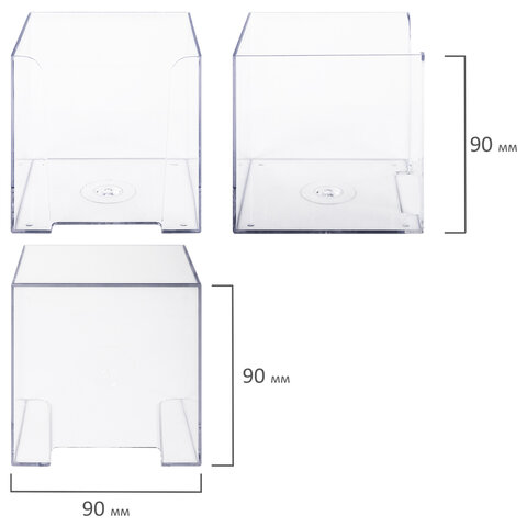 Подставка размером 90х90х90 мм вмещает до 1000 листов бумаги плотностью 80 г/м2. Состоит из одного отделения. Поставляется без наполнения.