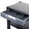 Снабжена полками для хранения бумаги и выдвижным ящиком для канцелярских принадлежностей. Модульная конструкция позволяет регулировать высоту подставки и устанавливать 2 или 3 полки. Благодаря роликам подставку можно легко перемещать в случае необходимости, а наличие блокировок позволит надежно зафиксировать подставку на месте.