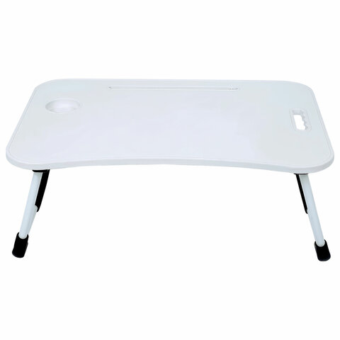 Изготовлен из высококачественного пластика. Классический дизайн столика хорошо впишется в любой интерьер. Благодаря столику для ноутбука снижается нагрузка на мышцы спины и шеи во время работы с гаджетом. Наличие на столешнице специального углубления даёт возможность разместить на ней стакан или кружку.