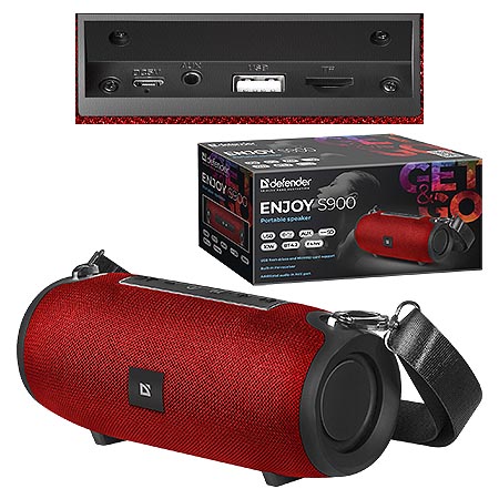 Колонка портативная " Defender " S900 Enjoy красная, пластик, ремешок для переноски, Bluetooth, AUX, microSD, FM, USB, 10Вт, 95*220мм
