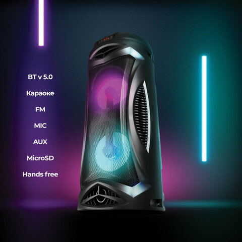 Колонка портативная SVEN PS-655, 50 Вт, TWS, Bluetooth, FM, USB, microSD, LED-дисп, пульт, черный, SV-020163