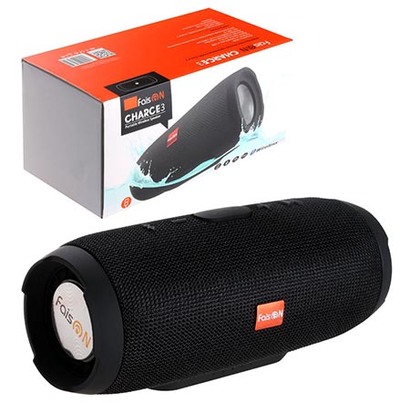 Колонка портативная " FaisON " Charge 3 чёрная, беспроводная, пластик, Bluetooth, AUX, USB