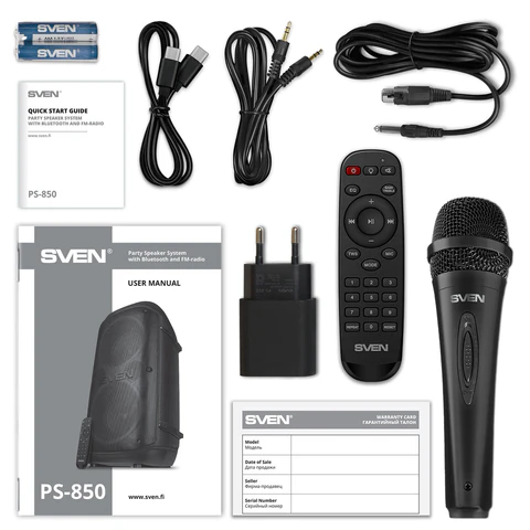 Колонка портативная SVEN PS-860, 100 Вт, TWS, Bluetooth, FM, USB, microSD, черный, SV-022518