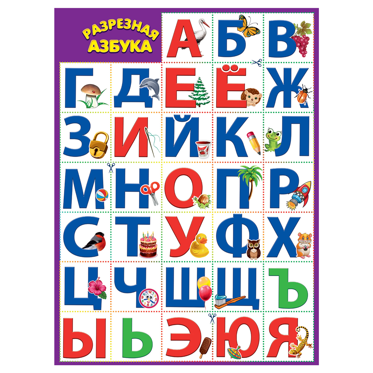Плакат представляет собой печатные и письменные буквы русского алфавита с примерами слов и картинками. Наглядное изображение алфавита поможет облегчить запоминание и усвоение букв ребенком.