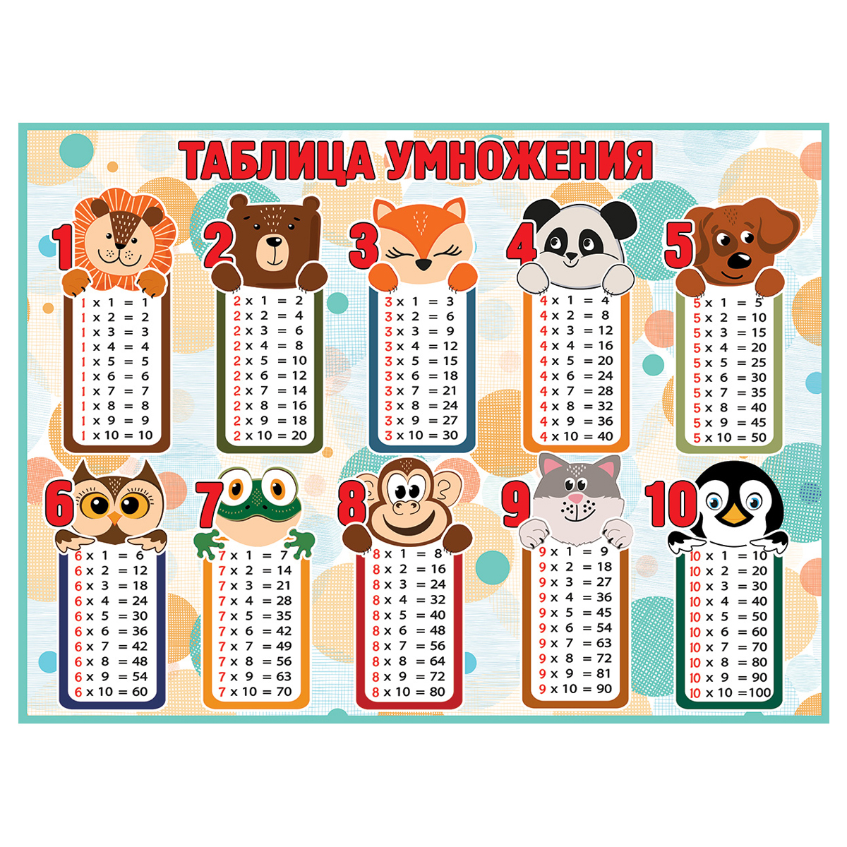 Плакат обучающий ТРИ СОВЫ "Таблица умножения", 440*600мм