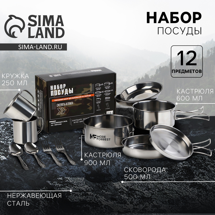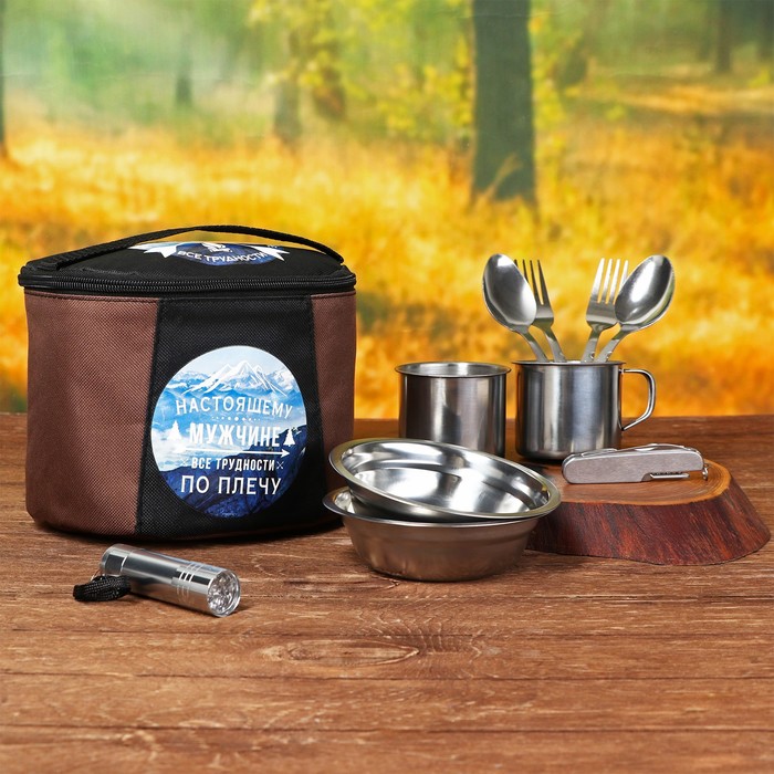 Подарочный набор туристический «Смелость и отвага»: посуда для пикника, 12 предметов