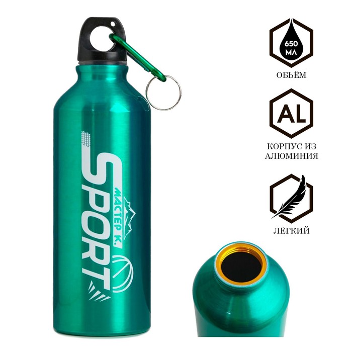 Бутылка для воды, 650 мл, "Мастер К", 21 х 7 см, корпус из алюминия, зеленая
