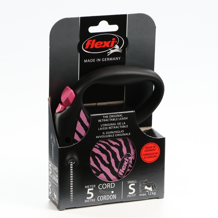 Рулетка Flexi Safari cord M (20 кг) 5 м, розовая зебра (pink Zebra)