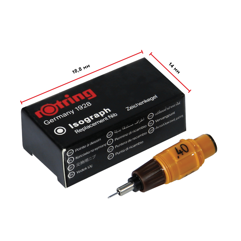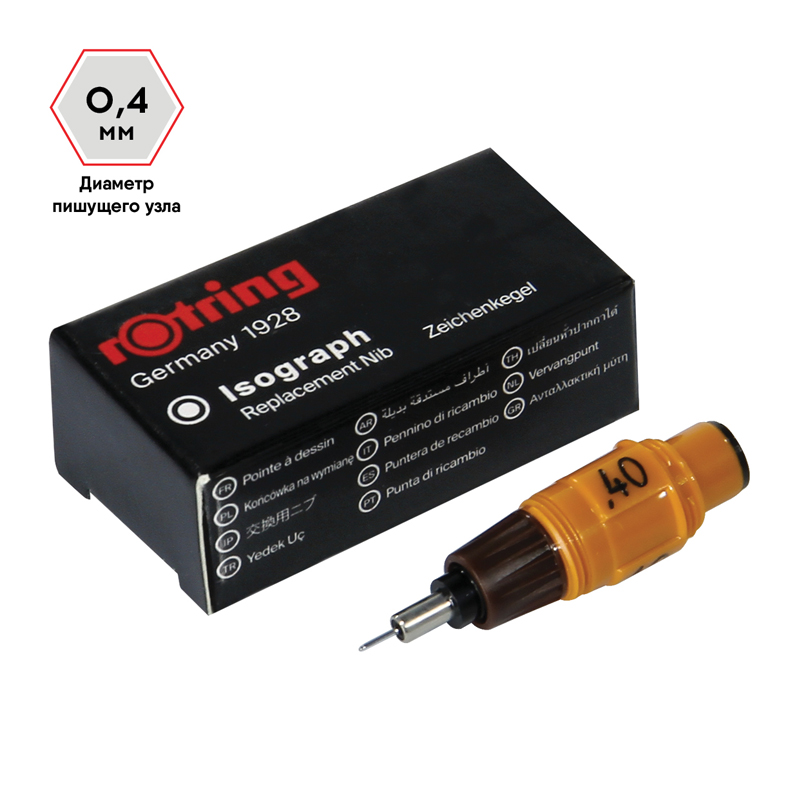 Сменный пишущий элемент для изографа rotring. Диаметр пишущего узла - 0.4 мм
