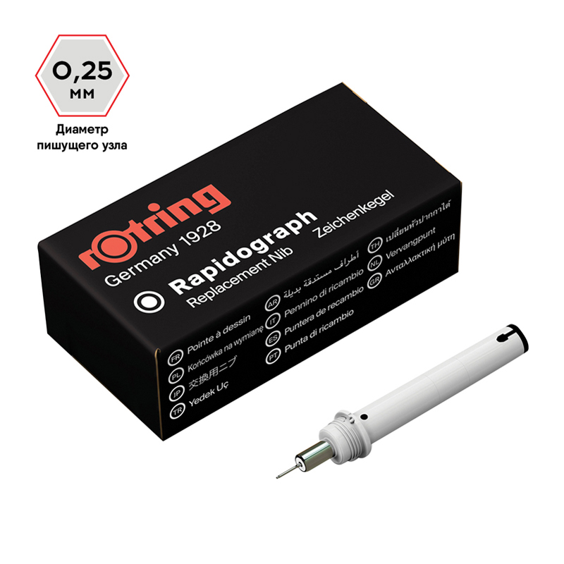 Сменный пишущий элемент для рапидографа rotring. Диаметр пишущего узла - 0.25 мм