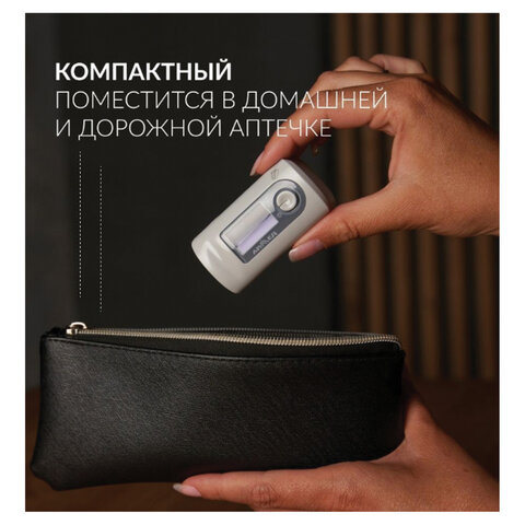 Управление осуществляется максимально просто – с помощью всего 1 кнопки. Для минимального потребления энергии есть функция автоотключения, которая срабатывает через 8 секунд. Компактный прибор без труда поместится в кармане. Для дополнительного удобства в комплекте есть удобный шнурок для ношения на шее.
