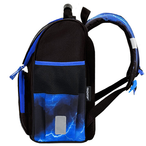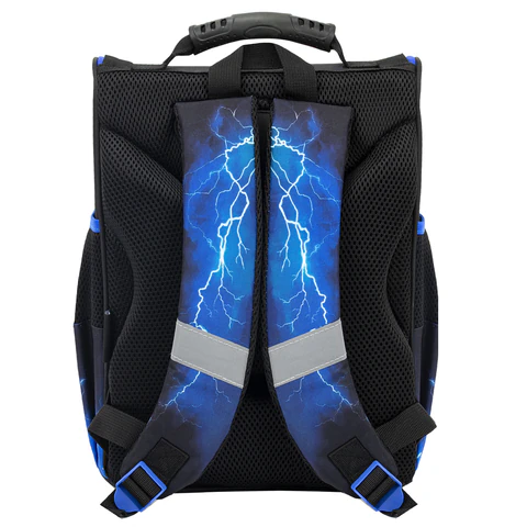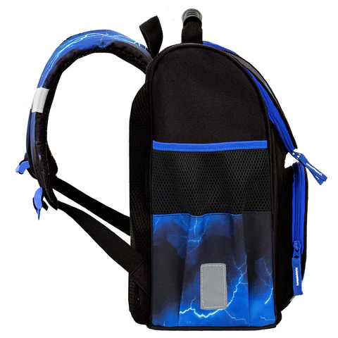 Светоотражающие элементы ранца расположены спереди на переднем кармане, на торцах и на лямках, а также дополнительно верхняя крышка прошита специальной светоотражающей лентой. Это необходимо для безопасности ребёнка в темное время суток.