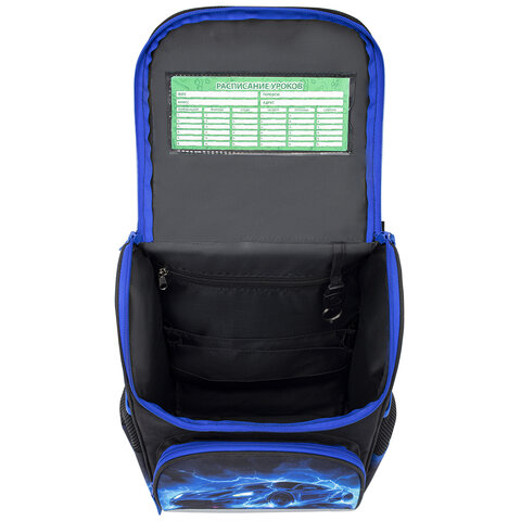 В основном отделении ранца можно легко и быстро разместить учебники и тетради, а также воспользоваться прижимными перегородками на резинке. Внутри ранца имеются карабин для ключей и вкладыш для заполнения расписания уроков на внутренней стенке крышки.