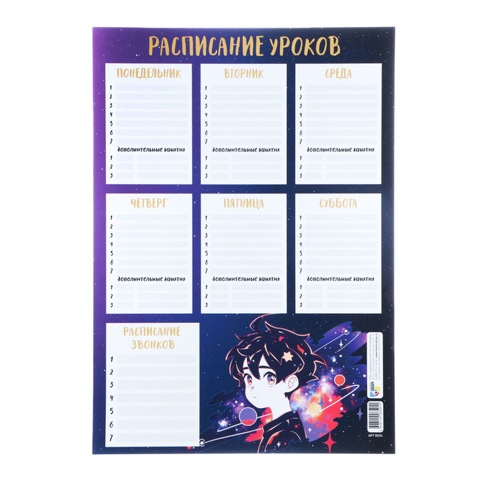 Расписание уроков А3 "MIX" (ассорти) горизонтальное