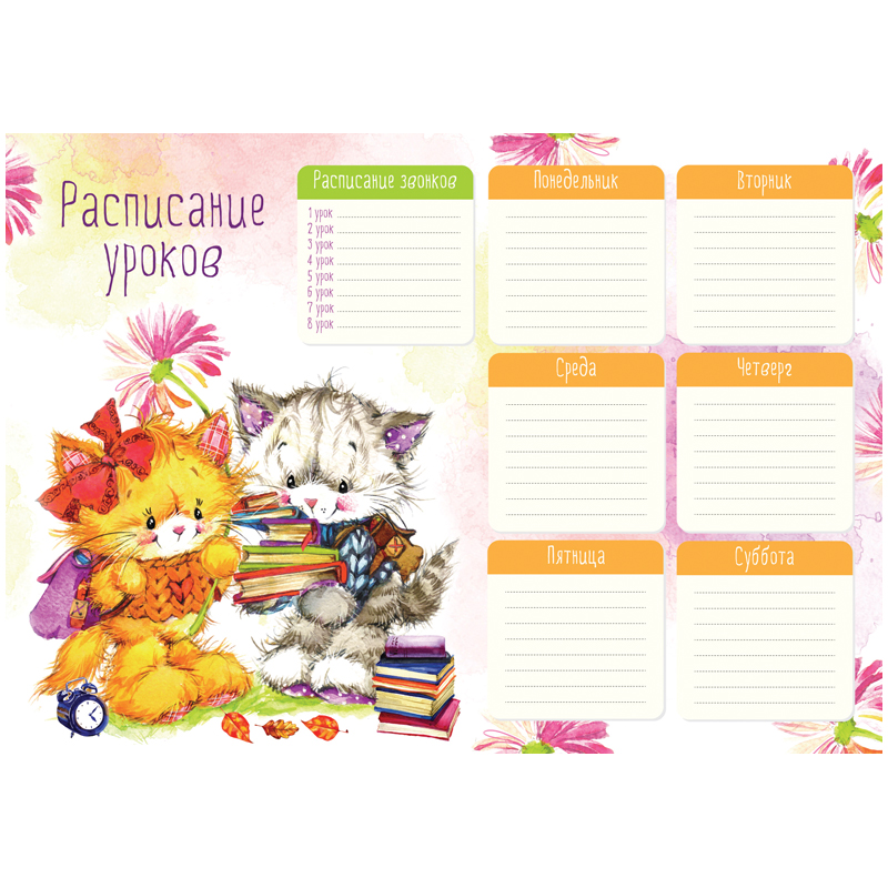 Расписание уроков «Милые кошечки» А4, многоразовое магнитное с маркером