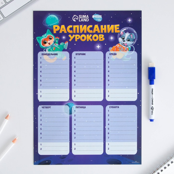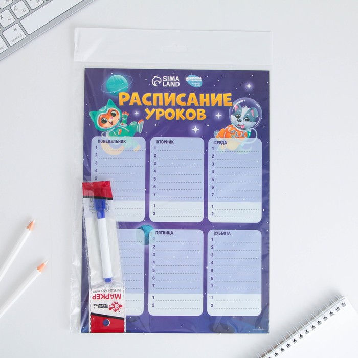 Магнитное расписание уроков многоразовое «Пора в школу», А3, с маркером