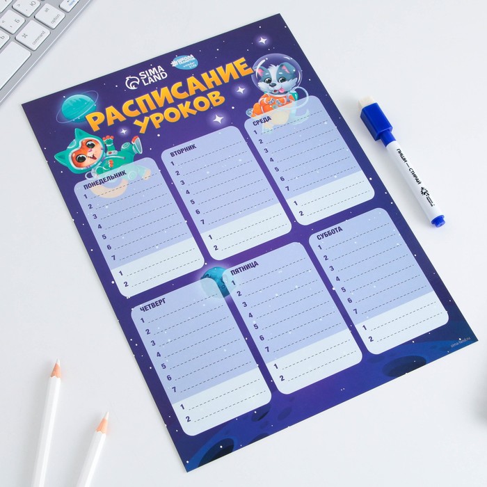 Расписание уроков «Милые кошечки» А4, многоразовое магнитное с маркером