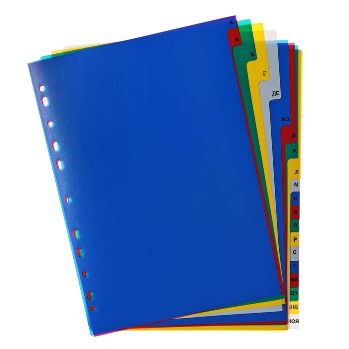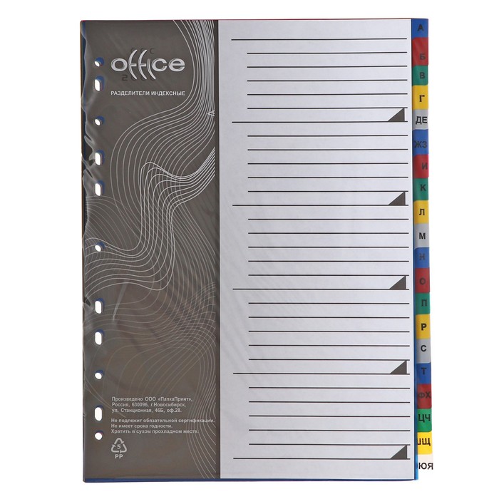 Набор разделителей листов А4+ Office-2000, алфавитные А-Я, 20 листов, цветные, пластик 140 мкм
