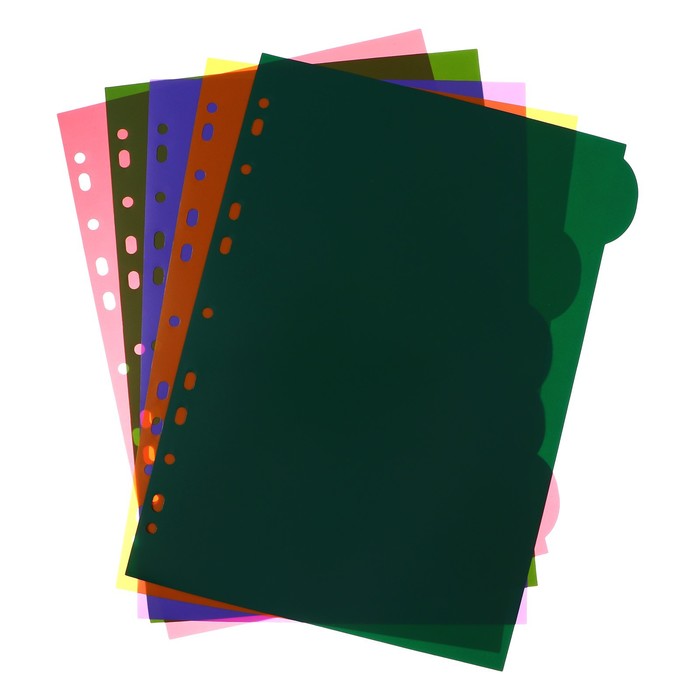 Набор разделителей листов А4 Office-2000, 5 листов без индексации, цветные, пластик 120 мкм