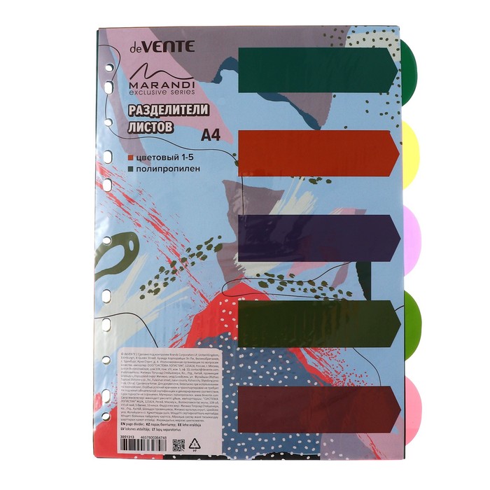 Разделитель листов A4 (245 x 305 мм), цветовой, 12 листов, "deVENTE. Marandi" полипропилен 140 мкм, индивидуальная упаковка