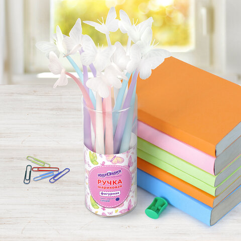 Шариковая ручка ЮНЛАНДИЯ "Бабочка" с мягким силиконовым корпусом.
