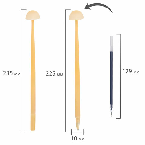 Шариковая ручка серии FUNNY YUMMY с мягким силиконовым корпусом и оригинальным дизайном в виде грибочков. Благодаря привлекательному дизайну ее не захочется выпускать из рук. Диаметр игольчатого пишущего узла, равный 0,7 мм, создает линию письма, равную 0,35 мм. Длина сменного стержня составляет 129 мм. Цвет чернил - синий. Корпус - ассорти.