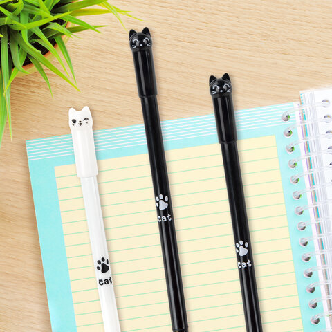 Шариковая ручка масляная ЮНЛАНДИЯ "Котик" с милой игрушкой на корпусе.