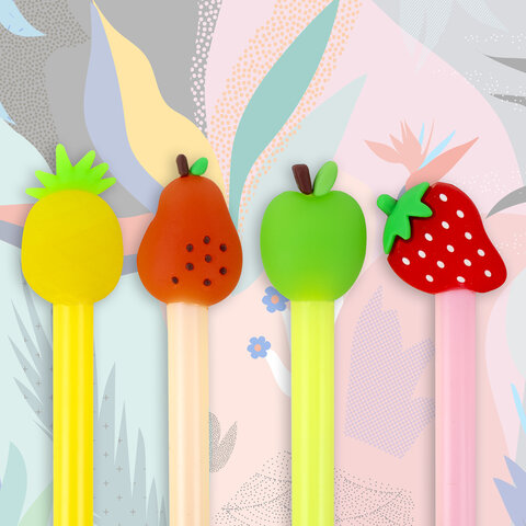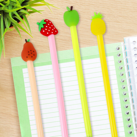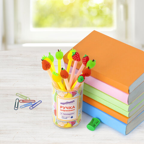 Шариковая ручка масляная ЮНЛАНДИЯ "Фрукт" с милой игрушкой на корпусе.