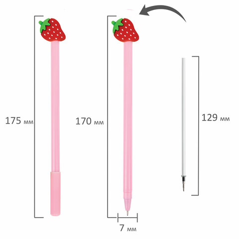 Шариковая ручка серии FUNNY YUMMY с ярким корпусом и оригинальным дизайном топперов в виде фруктов. Благодаря привлекательному дизайну ее не захочется выпускать из рук, а чернила на масляной основе обеспечат мягкое плавное письмо. Диаметр игольчатого пишущего узла, равный 0,7 мм, создает линию письма, равную 0,35 мм. Длина сменного стержня составляет 129 мм. Цвет чернил - синий.