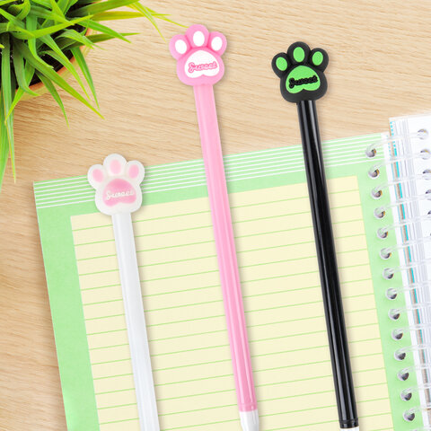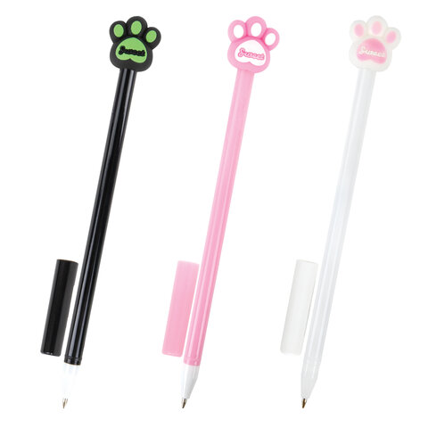 Ручка с топпером шариковая автоматическая FUNSTER "CAT PAW", СИНЯЯ, ассорти, пишущий узел 0,7 мм, линия письма 0,35 мм, 144376