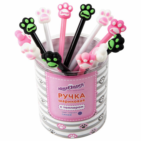 Шариковая ручка масляная ЮНЛАНДИЯ "Лапка" с милой игрушкой на корпусе.