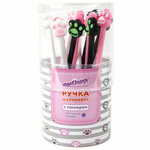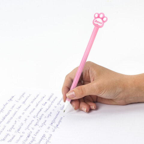 Ручка с акриловым топпером шариковая FUNSTER "KITTY PAW", СИНЯЯ, ассорти, пишущий узел 0,7 мм, линия письма 0,35 мм, 144374